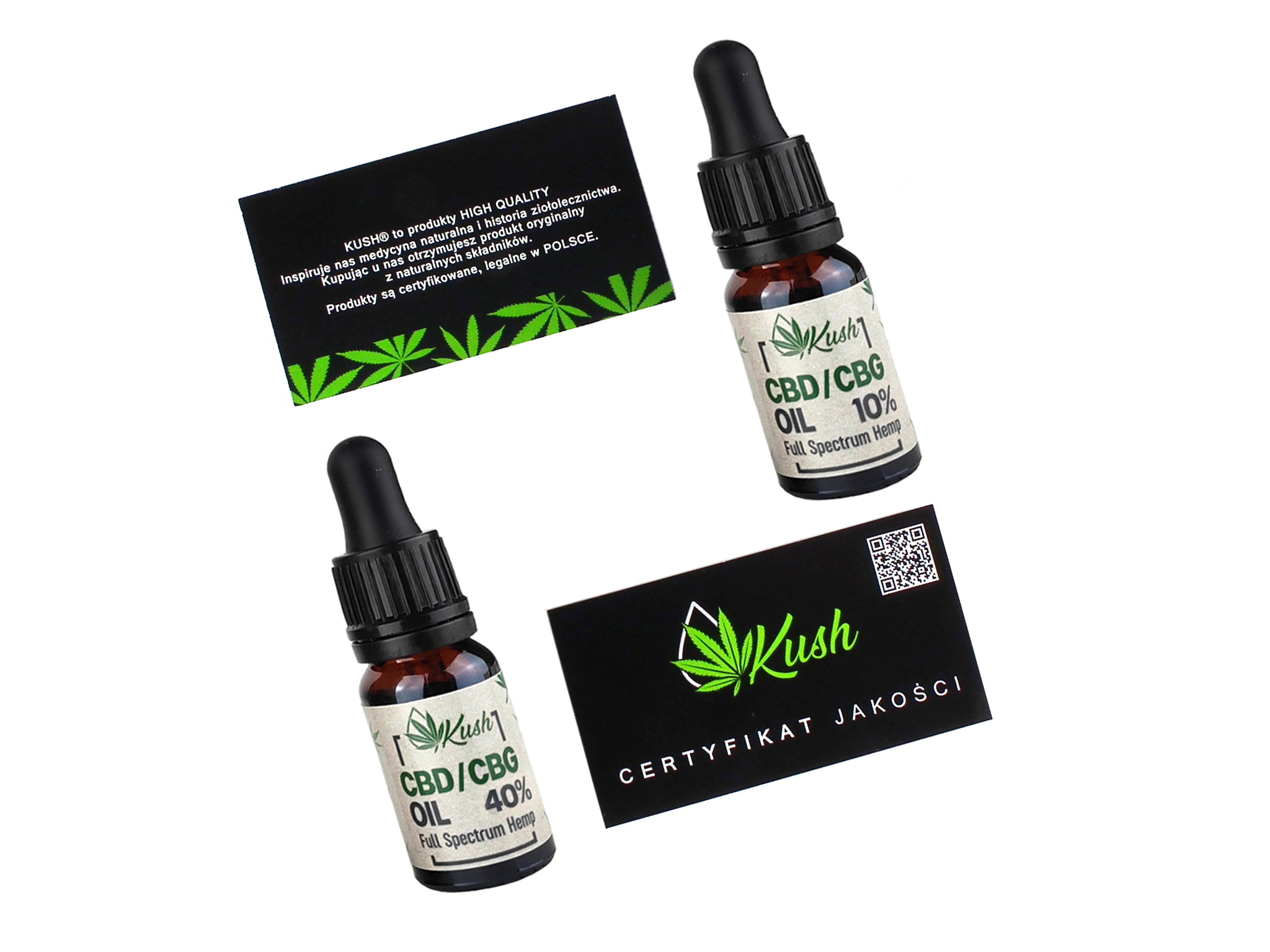 Olejek konopny KUSH CBD+CBG Full Spectrum, to połączenie ekstraktu konopnego Full Spectrum CBD i CBG z olejem konopnym tłoczonym na zimno