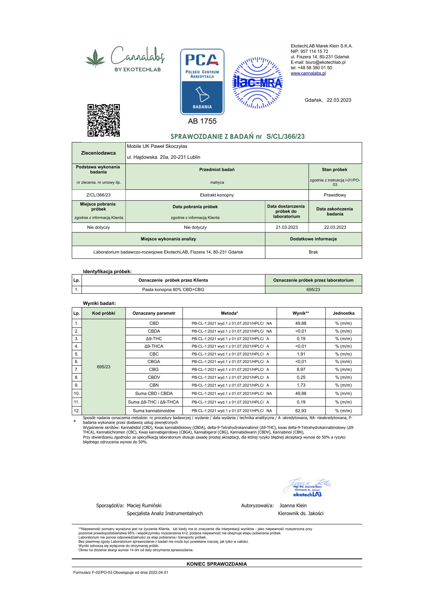 Ponieważ kwestie prawne związane z zastosowaniem produktów zawierających w swoim składzie CBD nie zostały jeszcze jednoznacznie doprecyzowane, stosując się do aktualnych przepisów rozporządzenia Parlamentu Europejskiego oraz Rady (UE) Nr 2015/2283 z dnia 25 listopada 2015 r. w sprawie nowej żywności (…) Dz.Urz.UE L 327 z 11.12.2015, str 1.), do czasu rozstrzygnięcia tej kwestii na poziomie UE, jesteśmy zobligowani do poinformowania naszych Klientów o tym, że wszelkie oleje, ekstrakty oraz susze zawierające w swoim składzie związki CBD, aby pozostać w zgodzie z aktualnie obowiązującym prawem mogą być oferowane wyłącznie osobom pełnoletnim do zastosowania zewnętrznego.