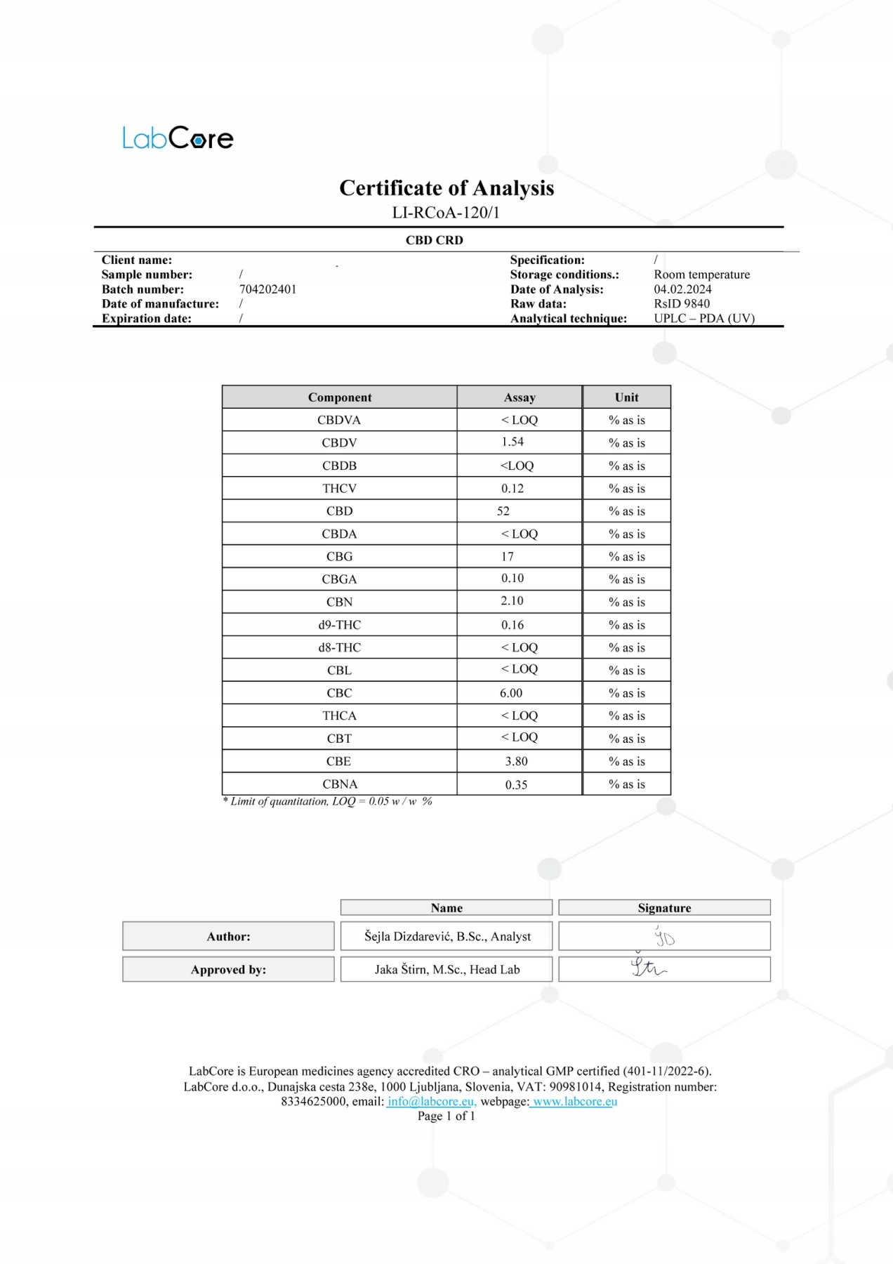 - THC: śladowe ilości zgodne z normami UE (≤0,2–0,3%)